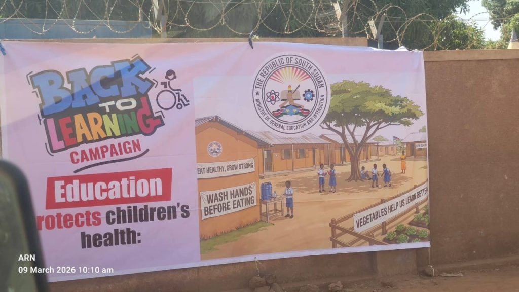 On Monday 9th /March/2026. The National Coordinator, Dr Ador Riak Nyiel.  joined a joint delegation led by Hon. Dr. Kuyok Abol Kuyok, Minister of General Education and Instruction, at the launch of the National Back-to-School Campaign in Wau, Western Bahr El Ghazal State. The event brought together H.E. Gen. Sherif Daniel, Governor of WBG State, the Ambassadors of the United Kingdom and Canada, the Deputy Ambassador of the European Union, Ms. Noala, UNICEF South Sudan Representative, several development partners, government officials, and children at Kosti Girls Nursery and Primary School.